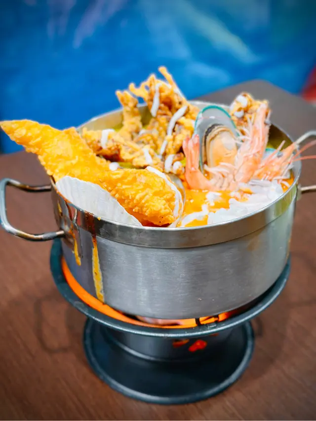 早前同朋友去食泰國菜呢間新分店係尖沙咀每碟份量都好多卡位又夠晒寬闊好適合成班朋友聚會咖哩三重奏 $228配料好豐富,有多種海鮮包括炸軟穀蟹、大蝦、青口、炸魚等等,仲配有蒜蓉包。沾上咖哩一齊食香辣開胃。火山排骨(酸辣口味) $228排骨超級大份!真係砌到個火山咁,排骨肉質軟嫩多汁,酸辣味特刺激到味蕾,但又唔會好辣。芒果糯米飯 $88糯米飯既熱又Q軟,芒果超鮮甜嘅鮮甜,係完美嘅組合。炸蝦餅(6件) $88蝦餅外層金黃酥脆,內裡鮮嫩多汁,蝦肉咬落好彈牙,沾埋醬汁好惹味。馬拉盞炒通菜 $88通菜炒得口感爽脆,馬拉盞香辣味道令成道菜增添香氣。菠蘿海鮮炒飯 $108米飯🍚炒得粒粒分明,口感彈牙,配上各種唔同嘅海鮮同糖心菠蘿,菠蘿酸甜嘅味道與海鮮嘅鮮甜味道出晒嚟。青檸梳打 $33青檸梳打口感清新宜人,青檸酸爽,好解辣。椰青 $52椰青口感清爽,甘甜椰香味濃。…查看更多