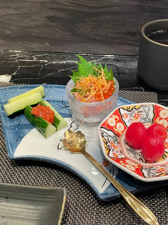 响香港首次一齊食 Omakase, 感覺好好喎, 細節感 誠意滿滿, 要記錄 分享一下~前菜就已經好驚艷, 由淡食向濃, 食材同搭配都出色, 令我哋對今餐滿滿嘅期待~ 第一啖 白茄子就開始比驚喜我地了~ 輕身感 清甜多汁, 原來 茄子可以咁水果