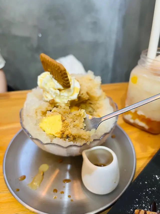 同朋友相聚既時光一般都唔少得甜品 近近地去咗天水圍站附近既 ’一糖’ 呢間鋪都幾好搵 出面有幾多霓虹燈牌指路亦可打卡🥰特濃焦糖日式刨冰🍧夏日炎炎點可以少得刨冰呢 店員介紹呢個冰係日本既係最近既新款 當然試試啦🤣雖然係特濃焦糖但配上綿密既冰不會太甜 加上餅碎一齊食口感豐富 而有時食刨冰會唔太鍾意食到底因為得番d冰冇咩味 但呢個唔會😉挖到底仲有驚喜-焦糖布丁🍮呢個贊👍🏻百利甜酒朱古力窩夫🧇一上枱就比個靚靚雕花吸引左🤩 窩夫外脆內軟而且入面仲有我最愛既麻糬❤️ 煙煙韌韌 層次好豐富 呢個窩夫配有濃濃既甜酒朱古力醬 亦有一球曲奇雪糕 可以享受到2種體驗川貝圓肉燉原隻雪梨🍐朋友最近喉嚨唔太舒服就揀咗個滋潤既燉雪梨🍐 入面都幾足料 甜甜地飲落幾舒服 朋友飲完話好似真係好d😂😂荔枝冰沙🍹荔枝味既幾有夏日氣息 唔會好假甜 裡面仲有好多色彩繽紛既椰果粒 口感豐富…查看更多