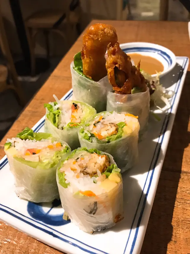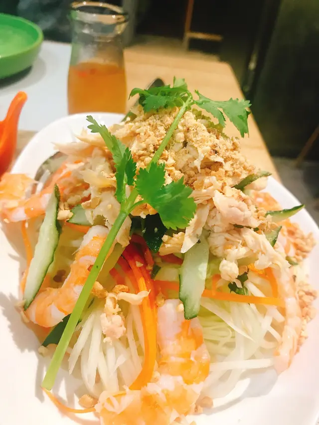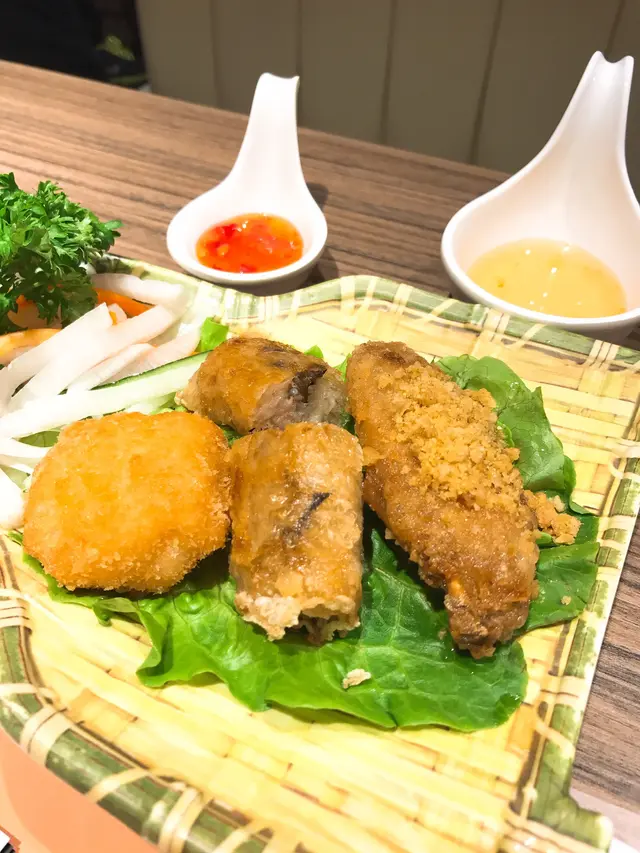 THE ONE一向係係尖沙咀食飯既選擇之一今日就黎到四樓既Leviet食啦首先就梗係叫沙律先啦青木瓜絲大蝦沙律 $62個沙律一黎到見佢好似成座山咁而且都好足料,有唔少隻蝦係度另外有個樽仔裝住啲汁比你去撈既撈個時要小心啲,唔好撈瀉個沙律甜甜酸酸,好開胃用黎做前菜就最啱啦原價係$72,特價就便$10跟住就叫左個越式拼盤 $98都係做緊特價,原價係$108佢係由4樣小食所組成既最出色既就係個蝦餅啦厚厚實實,外面一層就炸到又薄又脆入面就充滿住蝦肉,食得出係好足料,因為真係好有蝦既鮮味春卷都好食,外面層皮又係炸到好鬆脆入面有唔同既餡料,所以口感唔錯豬頸肉就肥瘦適中,肉質鮮嫩,係唔會痴牙既最後個個好似係叫扎肉蒸粉包雖然得2舊,但佢係好大舊,係無可能一啖放佢入口既食落去既感覺幾特別,平時唔多會食佢估唔到又幾有驚喜喎下一道就係牛油雞翼啦 $68一上到黎,啲香味就出哂黎最期待就係佢啲雞翼,所以已經急不及待想試啦一放入口,啲牛油同蒜香味出哂黎,食到我好滋味外面層皮又係炸到好香好脆,入面啲肉都好入味唔怪得人人都叫佢黎食啦最後就係滿載椰青飯 $98一開如其實有啲驚佢會唔夾想叫返菠蘿炒飯就算架啦但見佢幾特別,口啤又唔錯,就試下啦賣相相當唔錯,係用真椰青載住啲飯既而啲椰汁又真係流哂出黎既啲海鮮都好豐富好足料,見佢面頭已經有幾隻蝦啦啲飯濕濕地係因為已經吸哂啲椰汁,所以啲椰汁飯係令捨好味既食到中間有驚言,見到好大舊白色既物體,原來好似係八爪魚仔黎,好得意,我都唔係好忍心食左佢,有成4個食埋個飯就好飽嚕最後要讚既係上菜速度好快,落左單無幾耐就已經一碟一碟咁上黎啦…查看更多