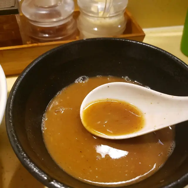 ,有唔同層次,不過食食下,湯汁變冷,亦沾上面條的水份,令湯汁的味變淡了。下次食會點濃味。調左味的筍好好味,但可以改善的係叉燒,雖然大大塊好抵,但係叉燒如果外表燒一下令油脂溶化,會更香更惹味。湯汁可以保持加熱住的話,亦可以令沾面的味道更能發揮得好。食完面條再加魚湯,飲哂個豬骨汁,十分滿足