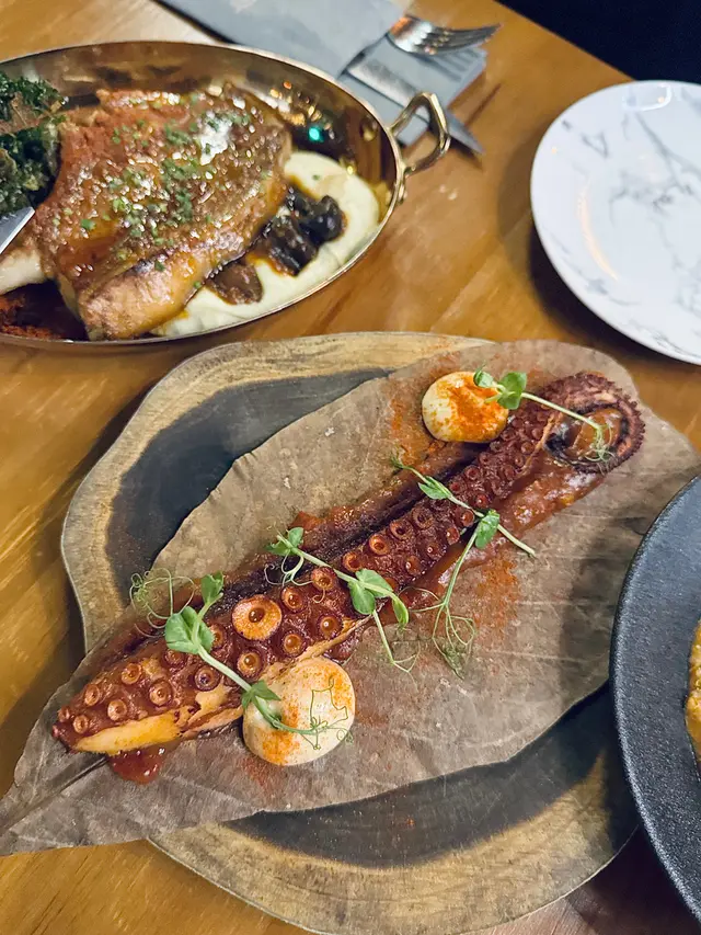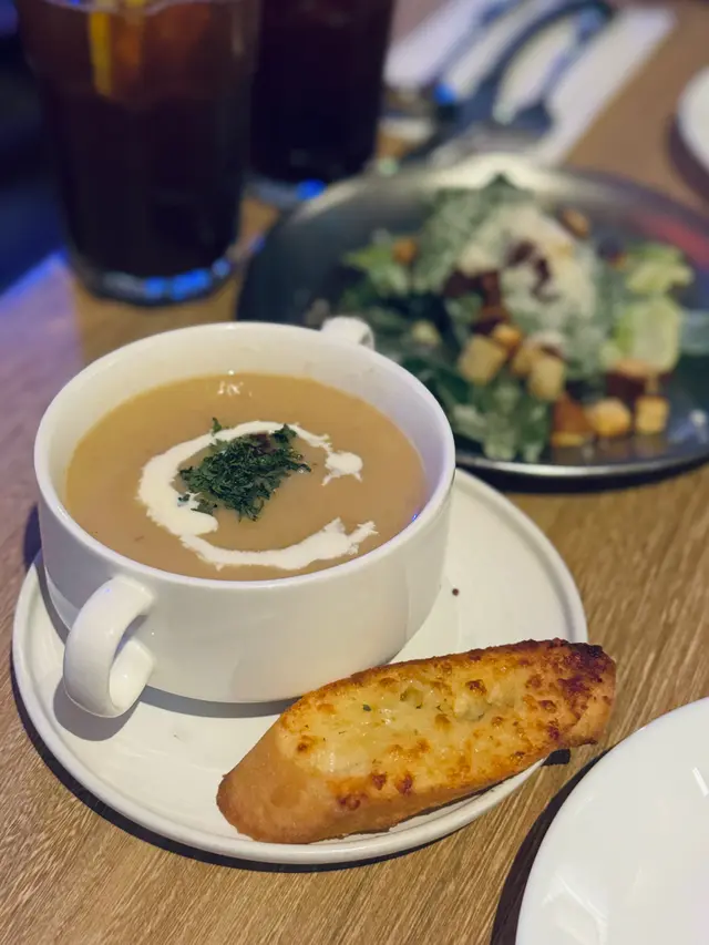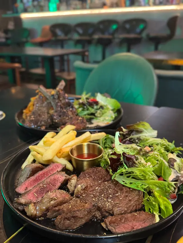 放工同朋友上嚟,環境暗暗哋,幾適合坐低chitchat,仲有飛鏢🎯同beer pong玩,聽聞天台位可以開party。 今次試咗10oz紐西蘭一級肉眼扒配粗薯條($279),牛扒🥩煎得中間粉嫩,肉汁豐富,咬落juicy,粗薯條炸得脆口,份量對一個人嚟講非常之足夠。之後係香草煎羊架配扁意粉($239),羊架煮得外脆內軟,香草味突出,扁意粉彈牙,配茄汁食落開胃,適合2個人share。餐廳係開放式廚房,煮嘢食嘅香味成日都會飄出嚟,非常吸引 。 夜晚3-8pm嘅Happy hour cocktail每杯$79,mojito 味道清新,同朋友飲多兩杯都唔怕 。…查看更多