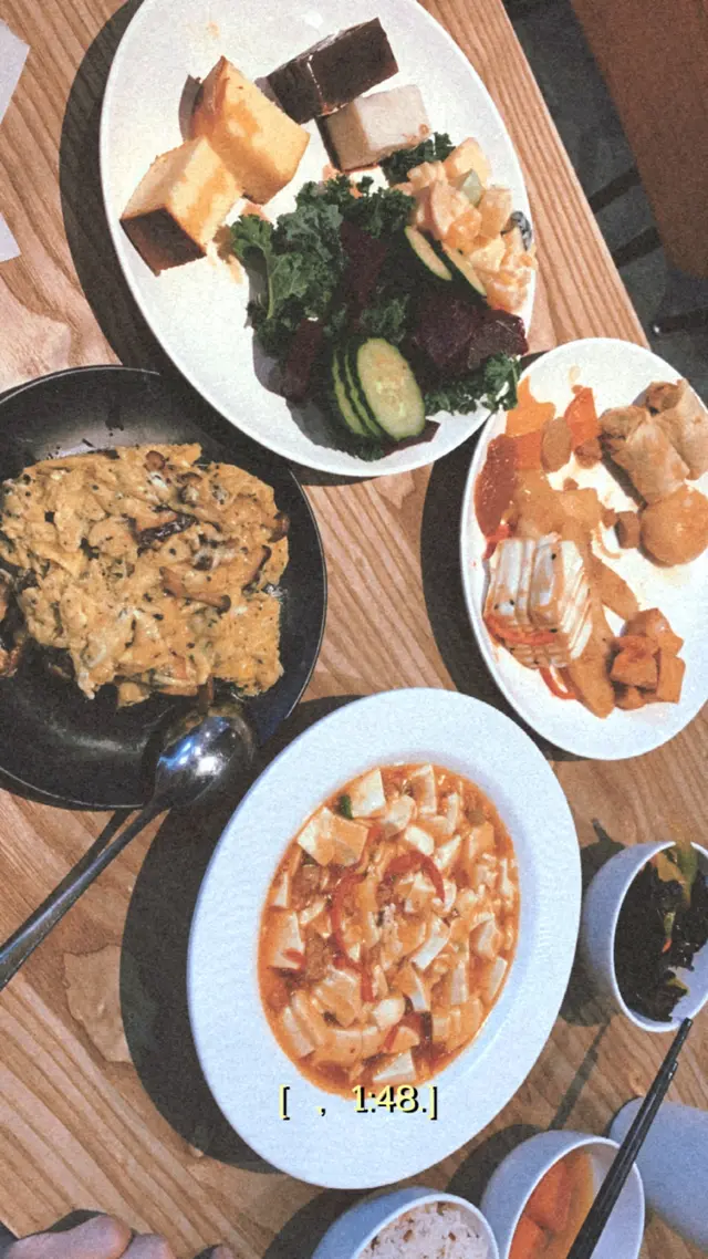 位於荃灣如心廣場既素食放題,客人只要order左一款主菜然後就可以任食自助吧既野食,自助吧有炒菜、沙律菜、湯、糖水、蛋糕、涼拌菜、炸物小食等等...其中一款主菜黑松露蘑菇炒蛋我最推薦👍🏻自助吧有幾款菜式都好值得得推介,口味吾錯,有別於一般既素菜,例如有涼拌黑木耳,佢哋既涼拌汁做得吾錯,夠酸酸辣辣,做到有川菜口味。其次佢哋嘅糖水都吾錯,堂日係芋頭糖水,芋頭十分綿,吾似出面既芋頭咁好多都係生水芋頭。👍🏻👍🏻😋😋…Read More