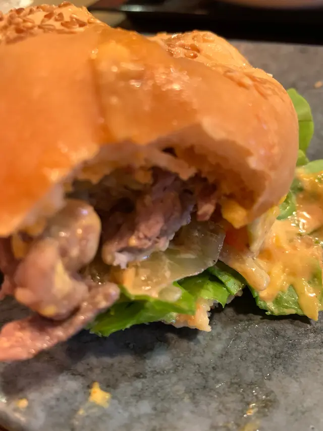今次我哋係中午時段去光顧既,當日做緊叫兩個lunch set 其中一個就有半價既優惠。我哋叫咗一個招牌既牛肉漢堡包配薯條,一個牛肉定食。牛肉定食就味道普普通通,但份量算吾錯,厚切牛肉,一份入面仲會有牛筋,牛筋煮得幾淋,好入味。最值我一提既係第二個餐招牌牛肉漢堡,因為佢哋有別於一般漢堡包,佢哋漢堡包所用既吾係普通漢堡扒你真係食得出有一塊塊牛肉質地嘅牛肉夾係包入裏,相當好味!!…Read More