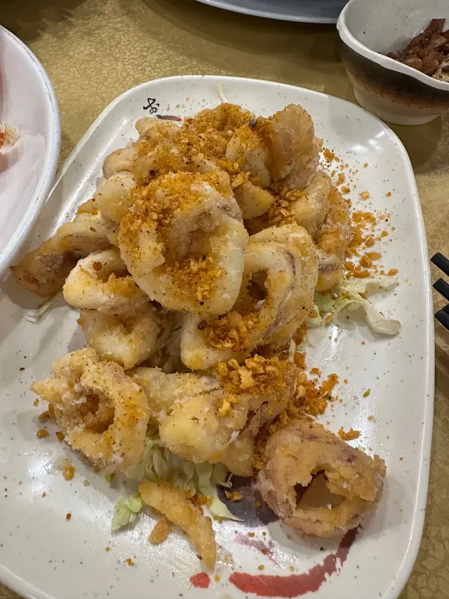另外仲有蒜蓉蒸開邊蝦,同埋椒鹽鮮魷。嚟到新哥一定要食金牌咕嚕肉,佢個脆漿真係整得非常出色,個汁啲調味又剛剛好,必食推介因為做節,特登介叫左隻新鮮炸子雞,啲皮脆卜卜但啲雞仲係好juicy唔會乾