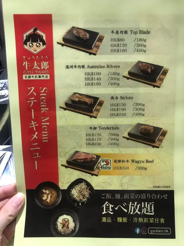 有一日同幾個食肉獸朋友經過旺角搵咗呢間牛太郎食lunch😆 一坐低睇Menu當然就係嗌肉啦!店舖好細心每一款肉都分唔同gram數選擇。因為在場有食肉獸係到,所以我地嗌左最大gram數既肉