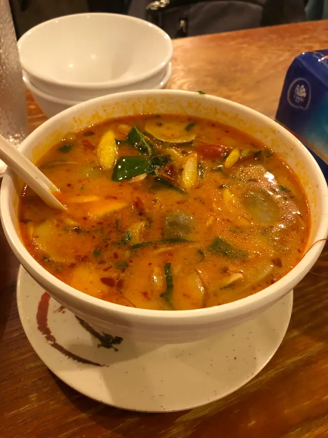 友人知道我們喜愛吃泰國菜,介紹我們造訪鴨脷洲一間隱世高手的泰菜~今晚我們來到試試看,發現座無虛席!裝修也不錯,座位很舒適。 冬陰公湯(小/$78)味道濃到不得了👅,感覺很十分真材實料,可惜只有一隻大頭蝦馬拉盞炒通菜($75)價錢略貴,味道相對頗辣,但味道一流,分量中等,有點overcook 的感覺泰式炒蝦肉金邊粉($75)茄味重、酸辣味夠、蝦爽口,可惜炒得未夠乾身,但整體感覺還不錯千層糕($25)椰汁味濃郁,口感煙韌,熱辣辣送上,一流肥仔波指數:3.5/5分…查看更多
