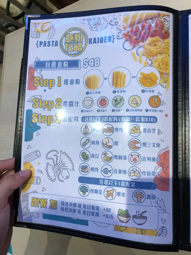 行過長沙灣,無意發現有個廣場嘅一樓全層都係foodcourt,肥仔波就緊係要入去尋寶啦😋行左一個圈,肥仔波決定試試間意粉店。呢間店用咗車仔麵嘅型式,客人可以係12款配料中選擇,再俾你揀要邊款意粉同醬汁,再跟餐加沙律或餐沙就加$8,要哂就加$16 。價錢好合理,配料數量同麵量唔會令你失望😉,香蒜橄欖油帶點微辣,好味道!另外有幾個set好左嘅「唔使諗餐」,水準像意豪屋,貌相再吸引d!幫襯小店,同渡難關,心情都特別好呀!😎肥仔波指數👦🏻:4/5分…查看更多