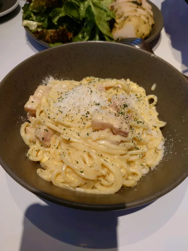 青醬雞胸沙律配檸檬醋醬青醬的羅勒香味清新濃郁,檸檬醋醬增添酸香與清爽感。雞胸肉質鮮嫩,生菜爽脆,整體口感清爽輕盈。厚切意大利煙肉配卡邦尼意粉煙肉鹹香濃郁,外脆內嫩,卡邦尼醬濃稠奶香中帶蛋香,意粉彈牙順滑。檸檬汁烤雞煙肉芝士意大利三文治烤雞的香氣與煙肉的鹹香交融,檸檬汁增添酸香提味,芝士濃郁拉絲。外層麵包酥脆,內餡多汁柔嫩。生酮花生醬黑巧克力忌廉卷黑巧克力帶有苦甜風味,忌廉增添絲滑與甜度,低糖但不失風味。藍莓核桃蛋糕藍莓的果酸與天然甜味非常突出,核桃則增添堅果香。蛋糕體濕潤鬆軟,核桃帶來脆口與咀嚼感,是甜中帶酸的經典組合。泡沫咖啡香濃的咖啡帶有淡淡的焦香,上層綿密泡沫滑順輕盈,口感層次豐富。鮮奶巧古力濃郁可可香氣,帶有微微的焦糖奶香。口感順滑濃稠,入口即化,甜而不膩。蜜糖青檸梳打清新的青檸酸味與蜜糖的天然甜味完美結合,口感清爽提神。…查看更多