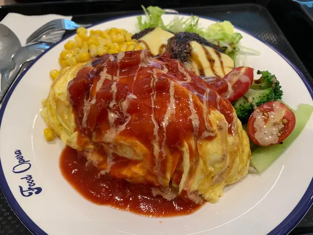 係東薈城掃完貨,慳錢家族上身,抵食之選當然係行耐少少去food opera平食!死港女表示太常見嘅餐廳又唔想食,咁耐無得去旅行,去轉東涌經過汀九橋都有旅行感,出到黎不如當去轉日本喇,食個蛋包飯試試佢。本身見到人地個雞扒炸蝦同埋雞扒鰻魚奄列飯好新鮮好香好好味咁,但自己一個食會太多,浪費食物個隻,唯有試下佢嘅漢堡扒睇下有無誠意!結果!兩塊漢堡扒上面有片裝芝士,本身唔大期望,但佢啲肉食得出係認真製作!似係人地burger個啲漢堡,唔係平時豬柳蛋嘅hea野!讚!加上佢嘅茄汁唔係一般茄汁,又再落蕃茄煮過嘅蕃茄汁,誠意加分!沙律菜同粟米都份量多,平時食菜機會少嘅人嘅恩物。唉,可惜美中不足嘅係佢嘅飯底,竟然唔係炒底不特止,連少少誠意用茄汁撈嘅飯都冇,只係白飯一碟,如果可以有有味嘅飯底就好嚕😭😭咁一定會食得晒😭。完。…查看更多