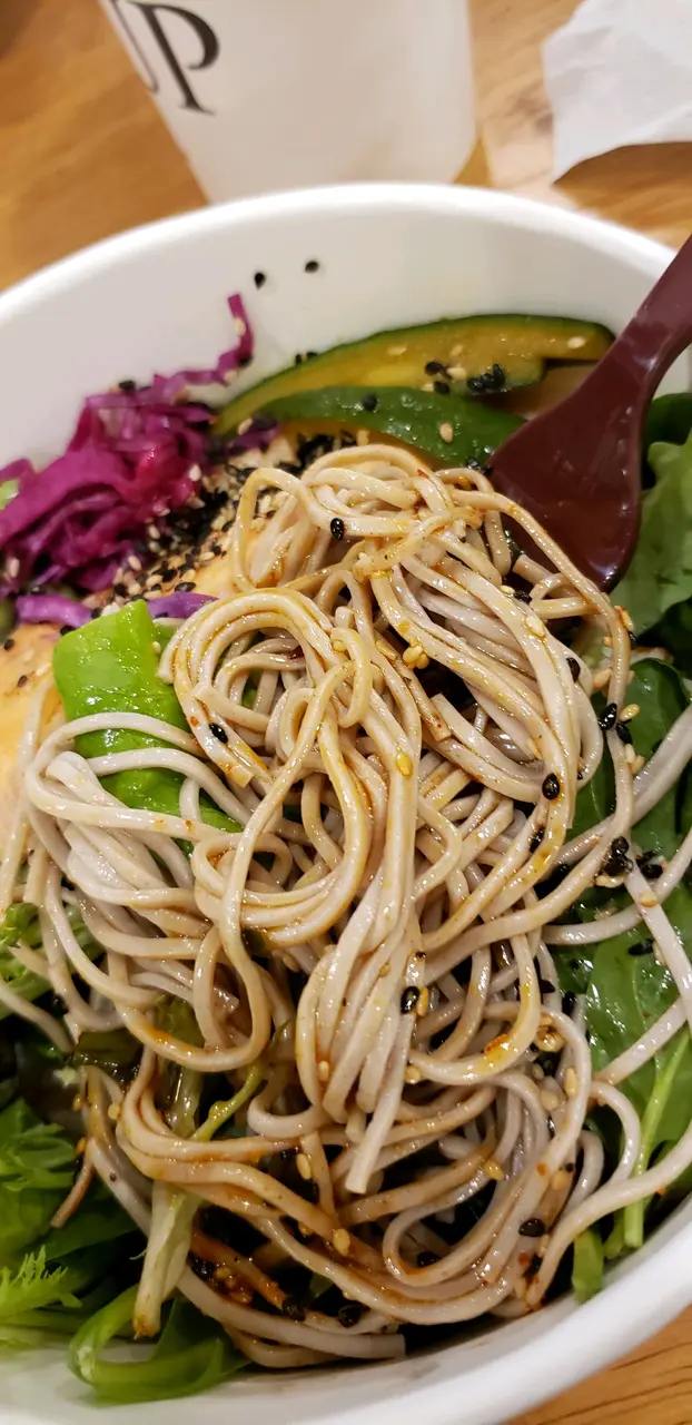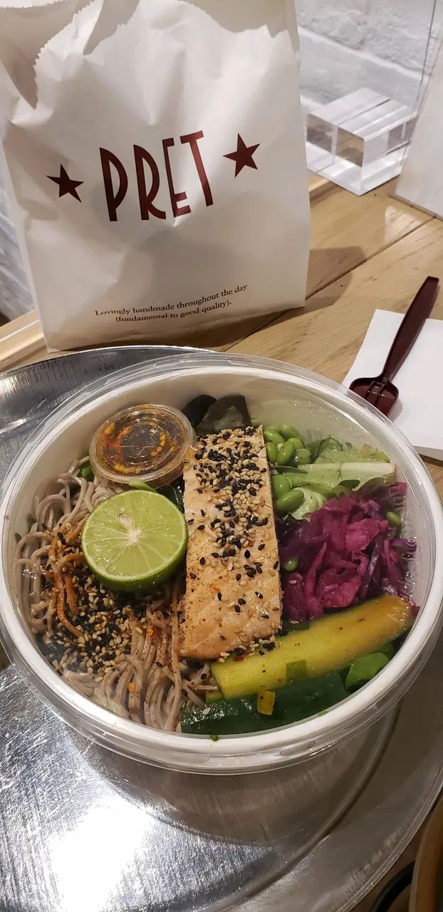 想食個 salad 又或者 輕食 (可選半份或全份 嘅三明治) 可以考慮吓呢間 本身位置已經好特別它置身在另外2位競爭者 (Starxxxxx 同 Pacific xxxxxx) 的隔離每次考慮 試吓其他競爭者時都自然行返去呢度 可能實在太喜愛 它嘅 朱古力牛角飽 $18 好味又飽肚熱烘烘 嘅鬆軟外表內裡充滿 朱古力 食完 成個人 開心曬 今次試左 呢個三文魚蕎麥麵沙律約半盒 新鮮雜菜有毛豆 青瓜 沙律菜少許蕎麥麵(2,3啖到) 一件熟三文魚自己加d青檸汁 再配上 獨特 比卡沙律醬汁 有芝麻香 好醒胃但係 分量唔夠喉 所以買定牛角飽 做tea 除了分量 令人缺乏飽肚感有d 唔太高興 係要講英文落order…查看更多