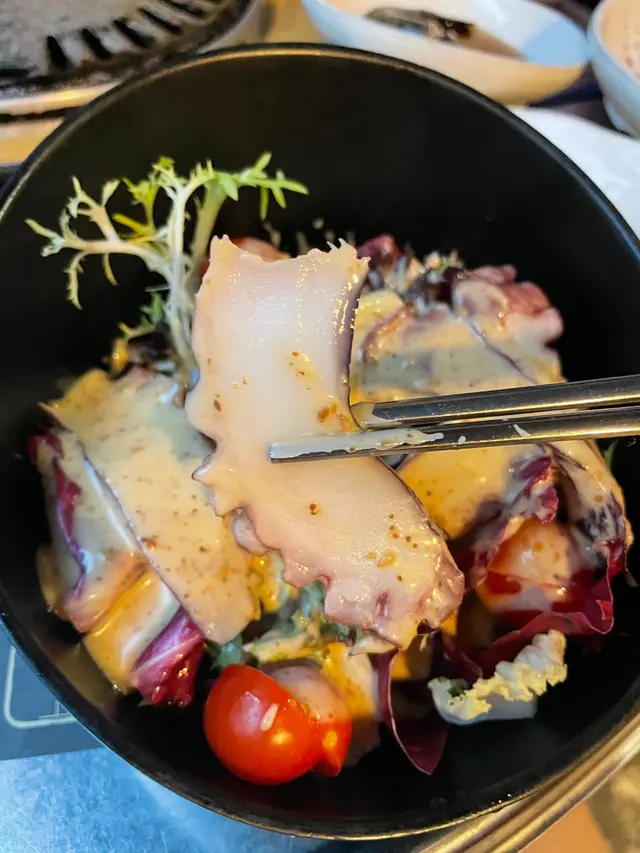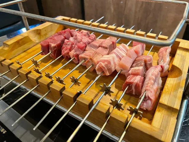 串燒我叫咗黑毛豬豬肩,配以煙肉碎 、芥末醬係上面好夾;蒜香羊串有少少蒜嘅辛辣味,辟走咗羊肉嘅騷味
