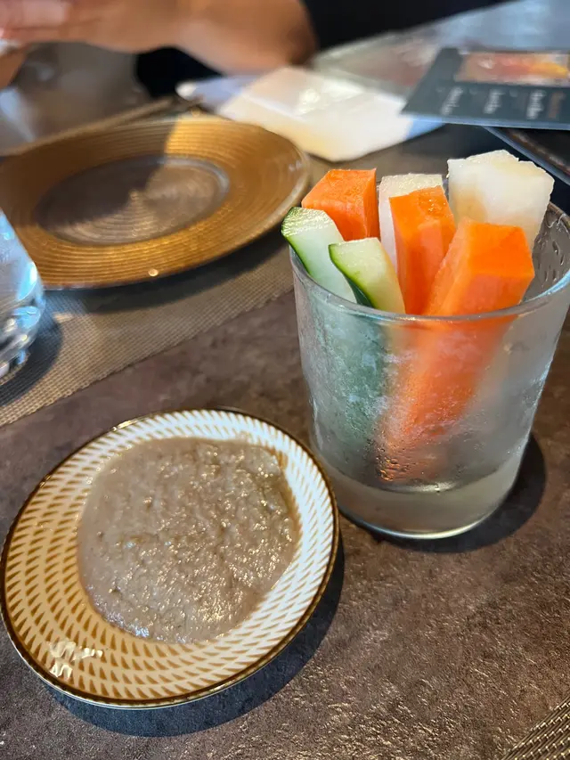 如果真係飲得嘅人都幾正,我同老婆兩個人都飲唔到好多,所以都係叫咗支細嘅300ml已經醉醉地呢個前菜我覺得幾好食,青瓜同蘿蔔清新不過係無味嘅,當配搭咗鯷魚醬我就覺得好開胃,不停係咁食