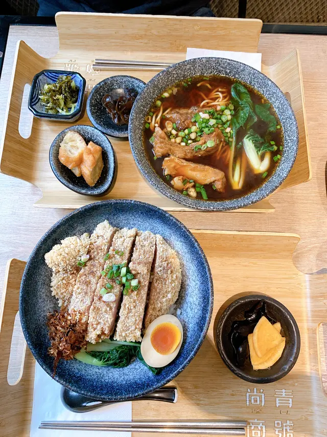 同事話:見你手長腳長,帶你行遠d搵食😂😂😂打公仔得1個鐘頭食飯,由太原街街好似近5個街口嗎🤔🤔🤔不過好在正值2:00左右,去到尚青就唔使等位(不過lunch set好似到2:30)傅佩嘉唱歌好聽,原來呢間台灣食店係佢開架😍😍😍 加上covid前其實我成日港台兩邊飛,好掛住家鄉嘅味道喇🙈🥲食落真係好唔錯😋😋😋 我好鐘意成個set嘅擺盤,好精緻,好文青咁😍見正都會好想食😋佢個牛肉麵湯底好濃,但唔覺佢味精,應該都有用心淆過; 排骨飯係我喺台灣成日都會食嘅便當🍱,講真,香港要食到真係似台灣口味嘅餐廳,除咗阿元,我覺得尚青係做到嘅😋配菜我個人覺得好食,係會清晒佢嘅😆不過lunch time時間真係太多人🙈暫時都未有機會再encore, 希望再試埋佢其他菜式,如果有素食選擇就更加好喇☺️…查看更多