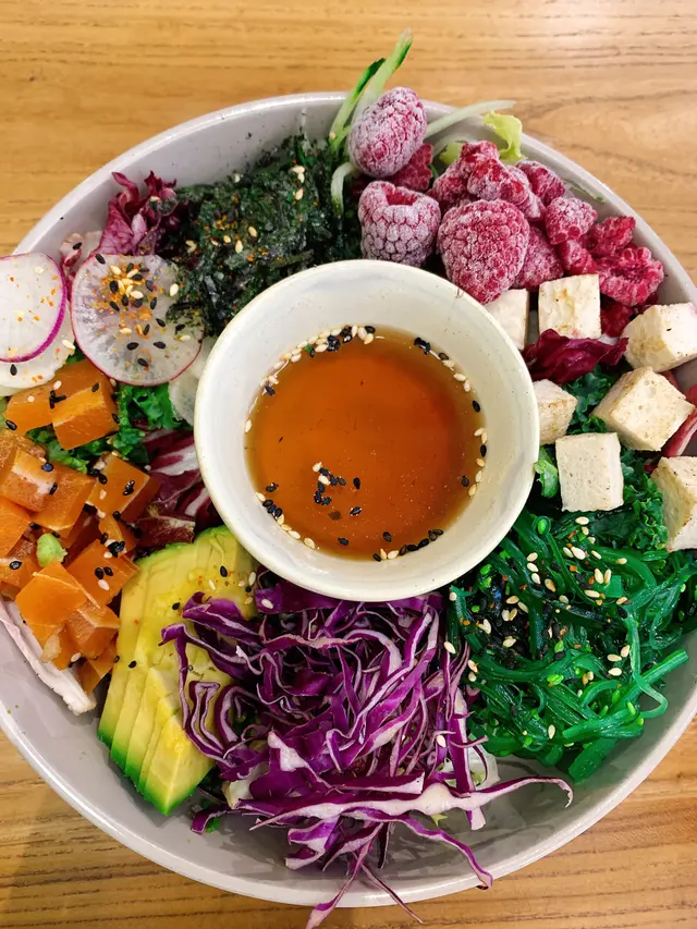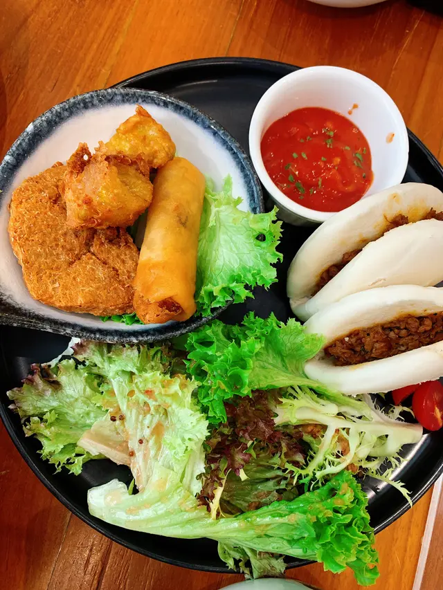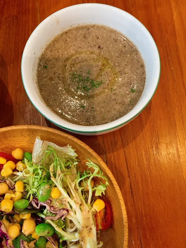 今次帶咗兩個siss去吃素又吃黃💛先要讚下一位女侍應姐姐👏👏👍🏻雖然無晒甜品🍮待應姐姐都好好,肯將二人餐個甜品換做芋泥蕃薯🍠波波比我哋😍😍😍好味😋飲品方面都好有誠意🥤 有茶,有啡,有果汁🍹感覺每種飲品都好健康份量方面,餐牌有溫馨提示,份量都比較多,如果細食可提出要求~~一家良心食店會希望客人夠食就好,唔浪費👍🏻👍🏻👍🏻 餐廳都照顧到生硐飲食/全素朋友,可以將澱粉轉為豆腐類,或走五辛💚💚💚💚💚雖然今日全天食得好素🍅🥝🥬🥒🥕🍠但比平日更飽肚🥰最重要係,吃得開心愉快,又吃得環境友善🙌🏻 還有我兩個siss鐘意🥰😂對素食開始有新嘅體會😍…查看更多