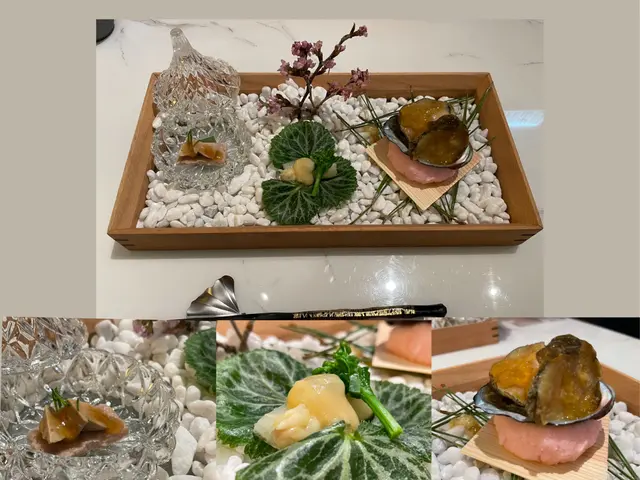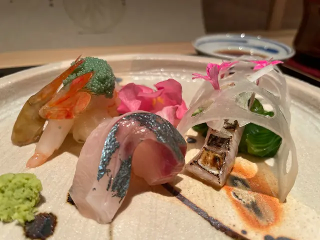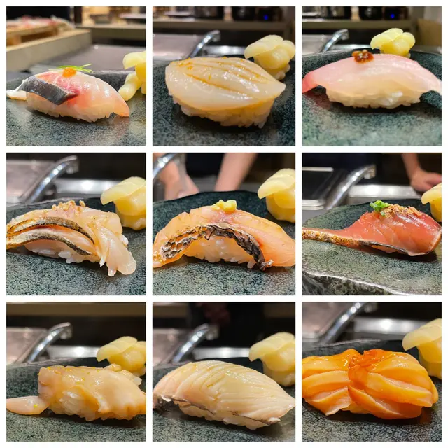 螢雪想食壽司,所以叫咗個有16品嘅螢雪餐先來八寸,即係前菜,一共有三款,汁煮鮑魚,煙鴨胸鵝肝配桃汁,春天野菜之花,白蘆筍,好清新開胃象拔蚌壽司,上面係肝煮成湯嘅啫喱肉質彈牙爽口 啫喱清甜炭燒金目鯛,個汁用魚骨熬製'上面係烏魚子,鮮甜又有炭燒香栗子蟹,中間係流心鵪蠢蛋,蛋黃連飯同蟹肉,我最愛池魚壽司, 已經搽咗醬油,可直接食,鮮甜牡丹蝦壽司,上面淋上由蝦頭膏加生蛋黃整嘅汁,再加蝦殼提煉嘅蝦油,大大突出蝦嘅鮮味螢光魷魚拌飯,放用紫海膽蒸,好入味,今年第一次食螢光魷魚,要好好把握有得食嘅季節熟成超過2個星期中拖羅,搽咗醬油漬,上面黃芥茉,好肥美海膽壽司,上面灑上淡雪鹽,唔會太咸,配合海膽剛剛好赤陸魚一夜干,炸過嘅魚鱗,放在一大片紫菜上,肉質結實,又有唔同口感真鯛魚,下面放咗湯葉腐皮同新鮮紫菜醬汁,魚鮮甜仲有好香豆味煙燻鰤魚,配檸檬汁同蘆筍,白肉魚,慢慢食,鮮味出晒煙燻和牛,放在一個盒內,等10秒用左手開蓋,好似仙境咁,牛肉外面脆脆哋肉好淋,食完食埋旁邊嘅紅蘿蔔同粟米你清清個口腔炭燒中吞拿魚魚腩再加上上無菌蛋黃,有炭燒香又肥美大拖羅刺身,入口即溶小長井蠔,經過慢煮,細細隻肉質結實蟹肉麵加蟹豉油及蟹油,好似食咗成隻蟹咁九繪魚燉湯,好清甜食完仲會送上煙燻過嘅焙茶,清清個口,好細心甜品係士多啤梨,同埋豆沙銅鑼燒,大滿足…查看更多