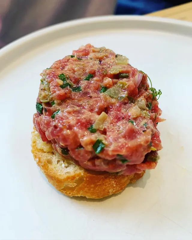 呢間餐廳在將軍澳海濱位置,地鐵站行過去要10-15mins 啦,入面裝修唔錯,枱與枱之間亦都唔會太迫,有私人空間,唔錯!餐廳菜式選擇偏少,個Menu就印在產子上面,第一個感覺係咁少選擇嘅?不過又咁講,選擇都唔代表一定好食。首先,生牛肉他他好精緻,四片包上面有四粒蒜頭,比你自己壓成蒜蓉再搽喺麵包上面,其實幾得意,同埋牛肉他他份量都唔係少,而且感覺好新鮮,好好食。另外個五成熟牛扒,都好香口,切開啲肉仲係粉紅色嘅,面頭煎香左,我覺得佢煮得唔錯,打卡亦都好靚。至於個 Cabonara,上枱之前佢哋加咗少少芝士碎,同埋上面有隻生嘅蛋黃,撈勻之後,超級香滑可口,雖然成間餐廳得一個意粉,冇其他選擇,但係值得嘗試。最後個西班牙油條,係即刻查嘅,所以上枱仲係好熱,而個Tiramisu 係凍嘅,所以超好味,口感亦一流👍🏻…查看更多