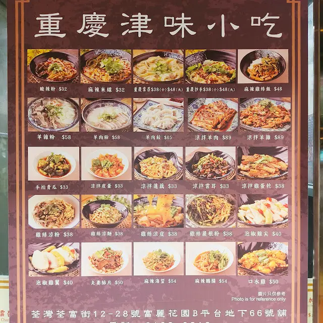 小絲一向愛吃羊肉餃,所以不時留意那裡有羊肉餃可以去試試。這間重慶津味小吃就是其中一間。店舖很少,只有3張2人枱,幸好晚上去剛好有客人埋單,吉枱就由我們頂上。餐牌有點混亂,看了看才明白。除了羊肉餃都不知點甚麼好,最後就先點一個蕨根粉再看看。之前已說店舖很少,職員都很少,只有2人,1位在麵檔煮東西,另一個年紀細的就做樓面的工作,但這個做樓面好像第一天踏出社會工作此的,有幫倒忙的意味。點單後,客人都不多,我們只是點了餃子和撈粉,但等了很久,差不多30分鐘食物才放到桌上,這個出餐時間實在不能接受。原本還想加單,現在這樣當然打消念頭。味道方面,羊肉餃賣相不差,餃子包得工整,但有穿餃的情況,餡了不飽滿,調味清淡,羊味突出。蕨根粉很麻辣,吃不到辣不要點這個,蕨粉本身是欠彈性及沒甚麼味道,都是薯粉較理想。整體食物不致難食,但空間太窄與等候時間太長,大大破壞食物體驗。阿偉食評:正常水平,這些食物不值等待如此久。推介指數:4.5/10…查看更多