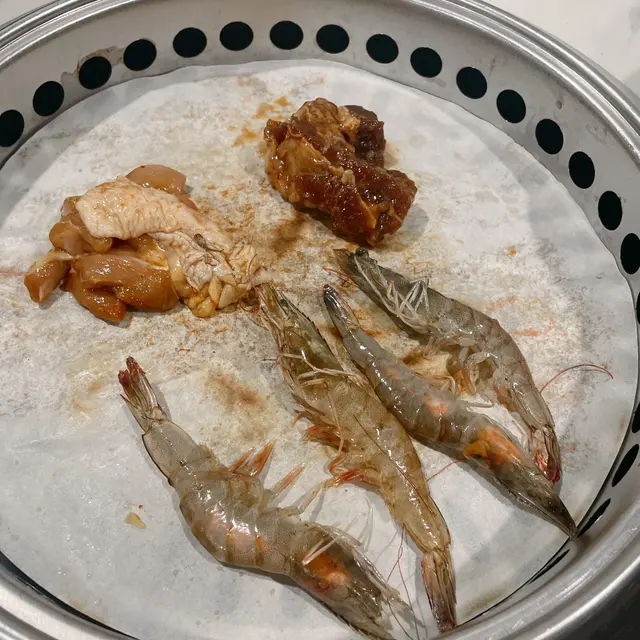 上星期六同班大学死党杀入元朗韩泰太,7条友围炉开餐!晚市$328任食,一入门口就俾个开放式烤肉区吸引住,炭火烟熏味混住人声笑声,灯光够亮唔会暗摸摸,卡位阔落够晒一班人喧哗,成个场热热闹闹似足韩剧大排档气氛!👬👭💨韩式烧肉配料任选 🩵🩵🩵🩵牛魔王重点推介「安格斯牛小排」!油脂花纹靓到反光✨,炭火一烧「滋滋」声,入口即溶牛油香爆棚~猪颈肉爽脆弹牙,腌得够入味唔使点酱都正!不过五花肉切得薄咗少少,烧耐两秒容易变肉干😅。配菜有惊喜:菠萝圈烧到焦糖面🍍,夹住油润五花肉食,酸甜解腻超夹!韩泰太炭烧窯鸡 🩵🩵🩵🩵🩵全场MVP非佢莫属!原只炭烧鸡上枱热辣辣,鸡皮脆到「咔嚓」声💥,撕开鸡髀肉汁多到滴落台💦!秘制酱料带微辣泰式香料味,腌到入晒骨髓,鸡肉嫩滑唔嚡口,连鸡胸都唔鞋!汽水+雪糕任食 🩵🩵🩵🩵汽水柜成幅墙咁大🥤,连韩国米酒都有!雪糕区有齐Häagen-Dazs绿茶味、Dreyer's脆皮筒,最过瘾系自配「爆谷雪糕杯」🍨:焦糖爆谷+云呢拿雪糕+朱古力针,冻热交融脆卜卜,饭后甜品大满足!人均$328食到捧住个肚走,炭烧鸡真系食到上瘾!环境够嘈够接地气,啱晒一班friend丧食倾计。虽然油烟味重咗少少(食完成身烤肉味😂),但烧肉选择多+窑鸡超水准,雪糕仲有H记加持,性价比爆灯💡!7个人食足3个钟冇停手,笑到见牙唔见眼~下次gathering可以encore!👯♂️💨…查看更多