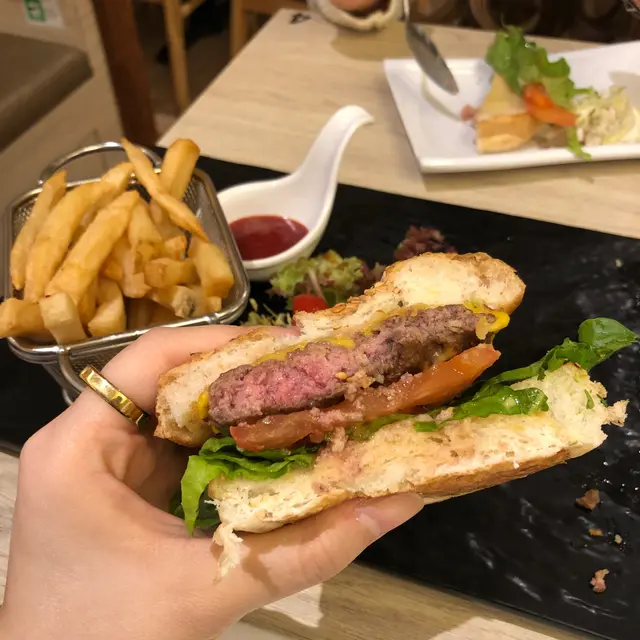 見到依間嗰陣仲諗lunch hour會好多人排隊 所以一早去揾定位 等埋朋友可能仲未係好多人知 所以啱啱好去到就有得入(齊人先入得!)✨經典牛肉burger hk$68依間主打食burger裏面嘅牛肉煎到啱啱熟 好有肉汁👍🏻成個set配埋薯條 啱啱炸起外脆內綿🍟✨黑松露雞肉risotto hk$68一開頭都驚 會係扮risotto燴飯嗰啲😂食落係真risotto!! 一粒粒煮得啱啱好又煙韌💕 落咗黑松露醬係香啲~依間性價比超高 仲唔會坐到好迫可以傾下計!…Read More