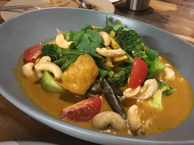餐廳的裝潢走工業風,鈍色牆壁配上強勢的投射燈,相比鮮明。之前拜訪過的工業風餐廳,個別座位的亮度會太光或過暗,猶幸今晚POP Vegan座位嘅亮度恰到好處,可以舒舒服服睇書,消磨(等人)時間。朋友到齊,終於可以落單啦~ 我哋試左:Vegetable Curry with Naan:辛香清爽嘅泰國咖哩,可惜附送嘅印度烤餅只有手掌大小,完全唔夠喉呀