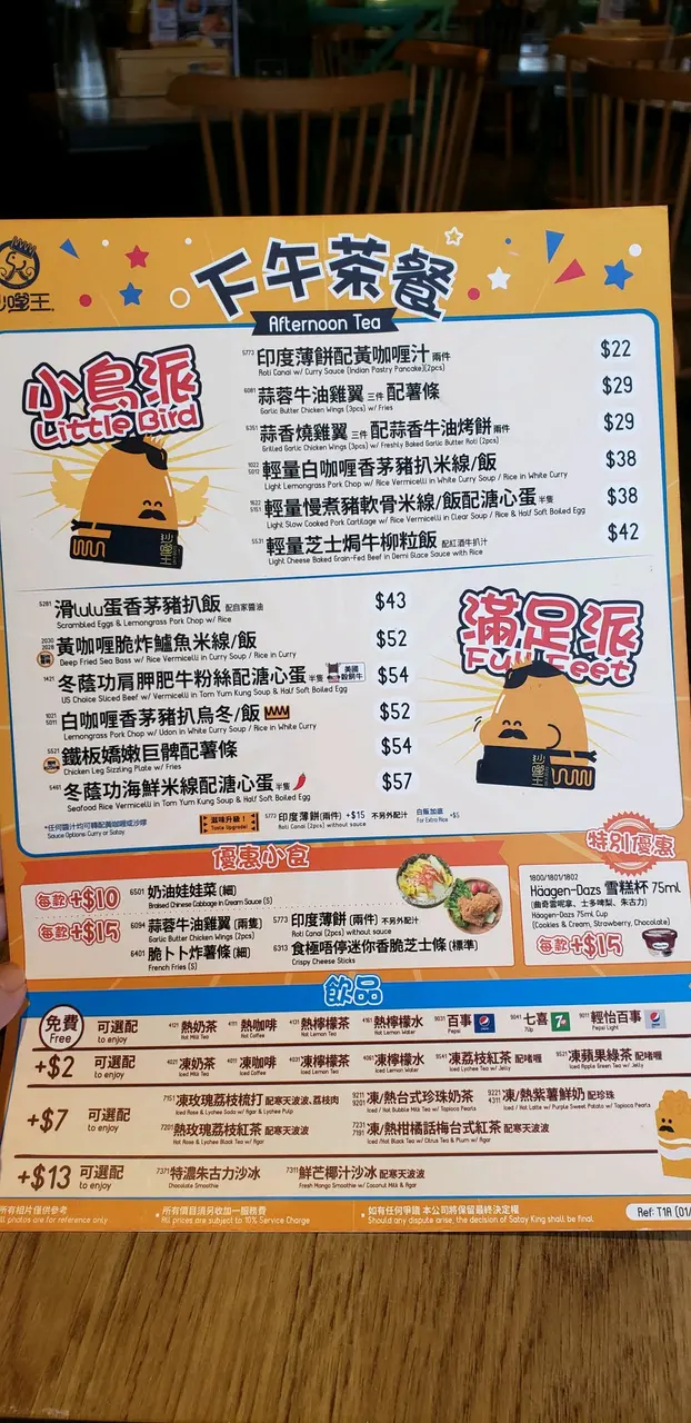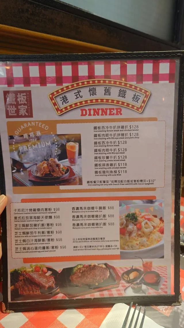 放工去左金魚街買魚糧,順便食埋晚飯。呢度都有好幾間港式茶餐廳,門口見到呢間茶餐廳食鐵板扒,都好耐無食過,咁就食番餐先。餐廳光猛,走懷舊港式風格,環境乾淨整齊。餐牌有港式鐵板餐同焗飯,而鐵板餐包左餐包、餐湯跟薯菜,百令蚊抵食又豐富,咁我哋就叫左兩份。餐包:翻熱左暖笠笠,好軟,搽牛油溶左食就OK。餐湯:羅送湯好足料,好多蔬菜,甜甜酸酸,夠開胃。忌廉湯濃結適中,又唔會太淡,夠晒味道。鐵板西冷牛扒:賣相唔錯,跟餐牌相一樣。叫左五成熟,切開仲紅紅地,唔會過熟,剛剛好。牛扒質感軟熟,唔韌無筋,配左黑椒料幾好食。意粉:食薯菜唔夠飽唔緊要,另加$10就有大大碟飯或意粉。鐵板肉眼牛扒:肉眼扒大大塊,同樣叫左五成熟。肉眼同西冷質感差不多,肉眼就比較瘦D。薯條份量都幾多架,仲要係粗身薯條,我就覺得牛扒跟薯菜已經好飽好飽。甜品:啫喱係免費贈送,裡面仲加左雜果,無咁單調,唔太甜,剛剛好。飲品:叫左凍檸茶同凍朱古力,兩杯都夠味正常。…查看更多
