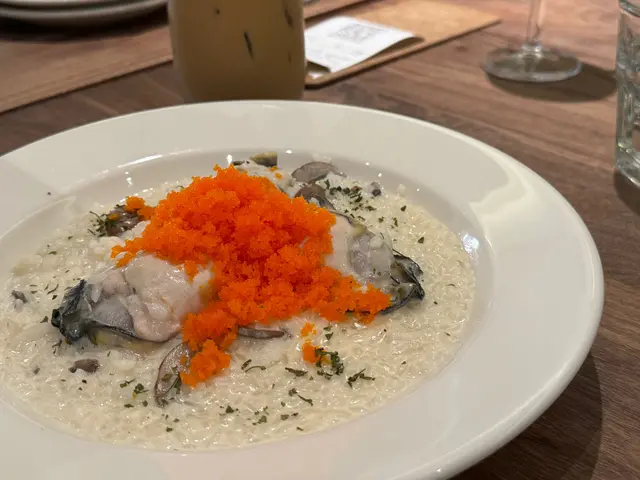 午餐訂咗位~但係唔係話太full⧐廣島蠔忌廉蟹籽飯🦪🍚有6隻大蠔,全部大大粒😍不過可能半生熟,有小小腥😳記得要配埋忌廉飯入口,口感一流😆⧐ 海膽意粉本身最期待就係海膽意粉,但係有少少失望,因為第一口係酸嘅🥲但係意粉超級掛汁,所以都算成疊食晒😂⧐是月特飲 蜂蜜伯爵茶咖啡☕️呢個係好唔match嘅咖啡,千祈唔好嗌😂⧐ 藍莓🫐提子伯爵茶☕️糯米窩夫配雲呢拿雪糕⧐宇治抹茶🍵蕨餅糯米窩夫配綠茶雪糕🍦2款都好好食😋窩夫好重伯爵茶同埋抹茶嘅味😍成個都好脆唔,配埋一大球雪糕🍧😋😋 而提子🍇仲係好清甜嘅青提!食返啲水果罪惡感都冇咁重😂…查看更多
