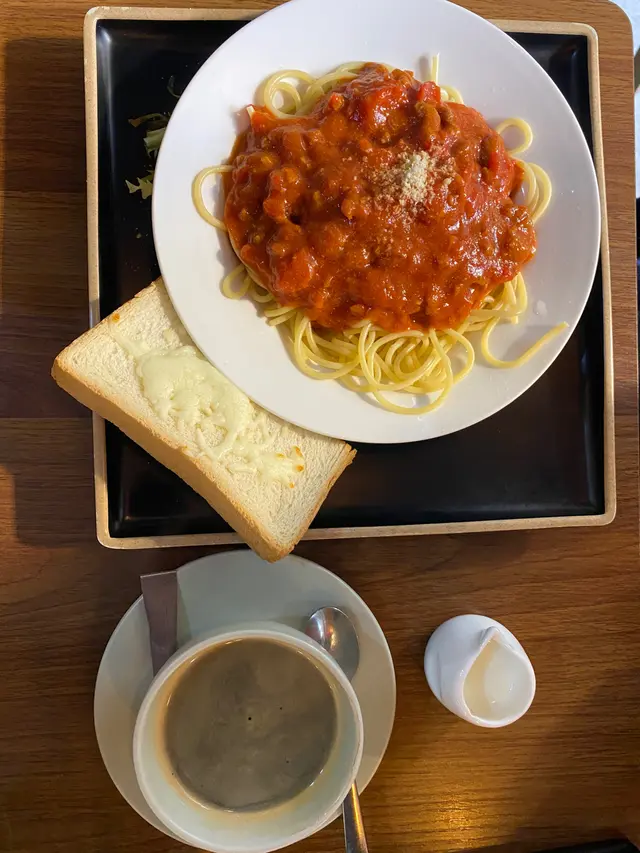 叫咗個下午茶set A 有肉醬意粉同多士肉醬意粉感覺幾新鮮 唔會剩係得好死板嘅番茄醬味 值得一讚嘅係佢個咖啡幾好飲 飲嘅時候唔需要落糖都唔需要落奶 已經感受到佢香濃嘅咖啡味但沒有苦澀嘅味道 可以建議大家如果叫咖啡嘅時候 先飲一口唔落糖 唔落奶嘅咖啡另外叫咗一個午餐沒有太大嘅感覺 只係覺得好一般嘅牛扒意粉只係得個龍蝦湯 係叫做好 入口個感覺好濃郁 個多士就麻麻哋 感覺上好薄片 直落就冇咩口感下午茶算係平同抵食 同埋環境氣氛唔錯整體感覺算係ok …查看更多