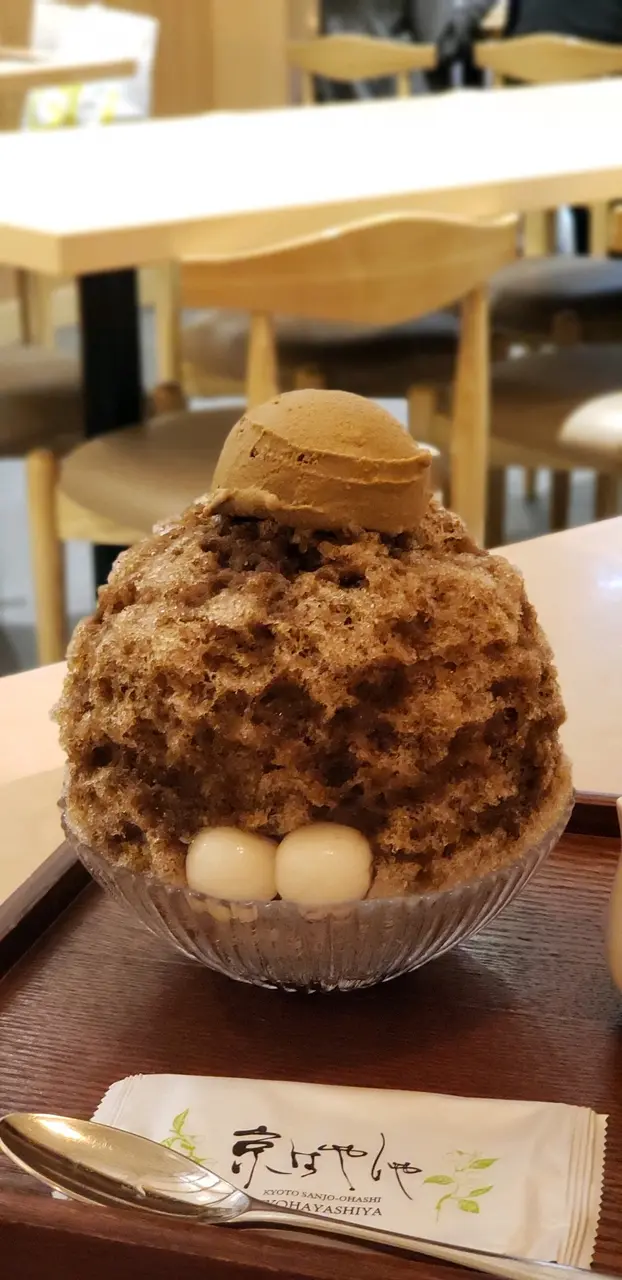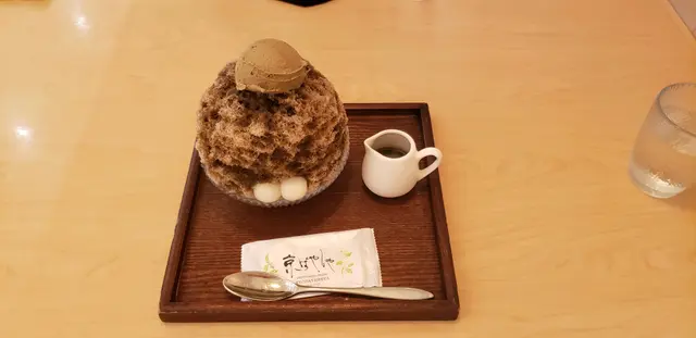 踏進京林屋,驚訝裝潢和京都的餐廳沒有大太分別,餐牌包含的也是正宗的京都甜點,另也有咸點以供選擇。我一個人等朋友,所以自己點了燶味培茶雪山。有驚喜,雪山配予的黑蜜很燶香,食得出日本黑糖的清甜味道。建議可以先嘗試挖出底部的紅豆和培茶果凍,夾著炮冰一起吃會更好味。中間的兩顆玉子配紅豆蓉吃甜度剛剛好。餐點已配搭了一小瓶的黑蜜,喜歡甜一點的,可以再額外加上。我就覺得不用額外加黑蜜,已經很夠清甜了。…查看更多