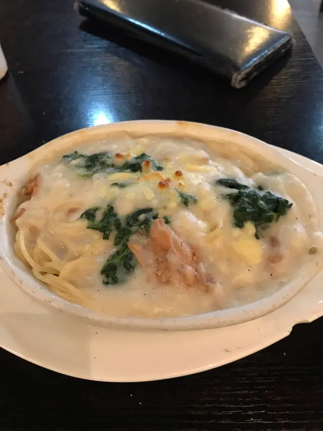 不久前發現呢間小店,今次巳經第二次去食😋翻開menu已經睇到呢間店好特別。闊麵係「手製」,醃肉係「自家製」,亦留意到店主對食材來源有要求。跟餐有得揀免費自家製凍水果冰茶或凍冷泡玄米茶,真係好適合消暑!**薯仔洋蔥青瓜甘荀沙律** 跟餐+$12本身好鍾意食薯仔沙律,於是加錢試下。比想像中細份,但係好好味😋 口感好特別,洋蔥、青瓜和甘荀係爽嘅,薯仔就軟嘅,真係一流嘅配搭👍🏻**番茄汁鳳尾虎蝦菠菜配手製闊麵** $71有得揀辣唔辣,我揀咗唔辣。自家製嘅闊麵果然係好彈牙👍🏻番茄醬好清新,加埋三隻虎蝦份量啱啱好 😊*豚肉生薑燒+日漬溏心蛋* $65午餐先有,上次晚餐來冇。選用黑毛豬,真係性價比超高嘅生薑燒。必試🤩*自家製醃肉、菠菜葉及車打芝士手作薄餅* $91冇影相,因為見到即刻想食😂超好味嘅薄皮pizza! 係我食過嘅pizza 之中差唔多最好食嘅。用料靚,味道都好!*厥餅*食埋靚甜品,真係好滿足!味道係甜甜地、有啲煙韌,好特別,不妨一試👍🏻留意食飯係限在60分鐘,同埋有最低消費。…查看更多
