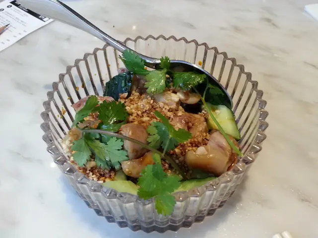 趁老闆放大假,今天我和同事們到千鶴享受一下豐富的午餐。侍應帶我們到窗邊檯坐下,對面便是紅館。每隻餐碟上有1隻小紙鶴,配合餐廳的名字,每隻鶴用的紙都不同,很有心思。我選了忛立貝拼蔬菜天婦羅,落單後幾分鐘食物便送到。侍應首先送上沙律,有幾片桃,火箭菜和其他沙律菜,混了日式的芝麻沙律醬,味道不錯,份量也足。接着侍應送上味噌湯,凍豆腐,主菜,鐵板炒飯,漬物。味噌湯材料豐富,除了必有的海帶,豆腐外,還有少許本菇,冬菇和蜆,鹹味適中。凍豆腐上有少許木魚絲,蔥花和薑蓉,令味道和口感更豐富。主菜中的天婦羅有蘆筍和番薯各兩片,薄薄的粉漿讓人清楚看到食材,像披了一層薄紗。天婦羅很脆,而且絕不油膩,墊底紙一滴油也沒有。另一款主菜是帆立貝,用鐵鍋盛載,估不到是吉列的,因爲帆立貝浸在有洋蔥,蛋,冬菇的湯汁裏,吉列皮淋了,粉漿太厚,比帆立貝還厚。帆立貝很新鮮雪白,用炸的方式烹調浪費了食材。湯汁也太甜,味道很假,也掩蓋了食物原味。鐵板炒飯足足有一碗份量,很乾身,粒粒分明,可惜味道不夠香。吃完以上食物已經很飽,還有雪糕和餐茶。雪糕有3款選擇:紅豆,綠茶和黑芝麻。我選了黑芝麻。雪糕有濃濃的黑芝麻味,甜度適中。我的同事説紅豆雪糕太甜,其他同事説綠茶雪糕也好吃。這餐真的很滿足,我們一行4人今天享用3送1的午餐優惠。每人只需$213,比正價便宜了約$70,如果原價便不值了。…查看更多