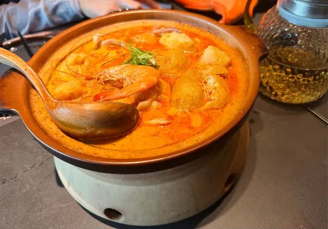 First impression is wow, what a fancy place with chill music~ is time to chill Pot of lasha~ with crystal noodle. Is quite beyond my expectation. Not the normal one usually try on street with many coconut milk n spicy soup base. This one is more sticky and think indeed. That’s why need to keep warming it up.The portion not big, as the pot is quite thin actually. But it still make 2 of us fullThe milk tea tofu drink is refreshing. The mixture of them balanced the sweetness. Just perfect…查看更多