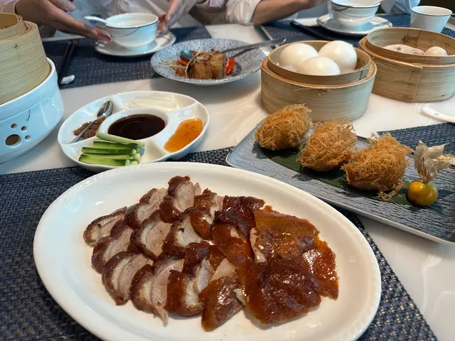 想中午歎下點心同烤鴨搵個環境靚既地方品味人生下其實點心又冇咩特別 正常發揮 但都平均貴坊間1/4 以上。呢度係食環境 服務 係一種體驗泥既..不過一定要激推個酥炸芋角。個表面真炸到起絲 乾身。坊間個d 炸完油淋淋好驚試伏。鴨大哥真心炸得火候好好但個鴨 可能期待值太高 覺得一般。個片有冇爐輕輕暖住 不過只限於最底個幾張 面頭個堆都凍野食到最尾 見到張紙巾 印住廚魔。就好奇點樣中西合璧呢 完來佢佢調左個方法 可以電爐烤 唔洗好似北京填鴨禁樣整…….只可以講 我比教欣賞傳統美。貴成1/3 , 係bb 鴨 可以話嫩,但portion 細…. 呢度有半隻? 我只能講我欣賞傳統美多點…查看更多