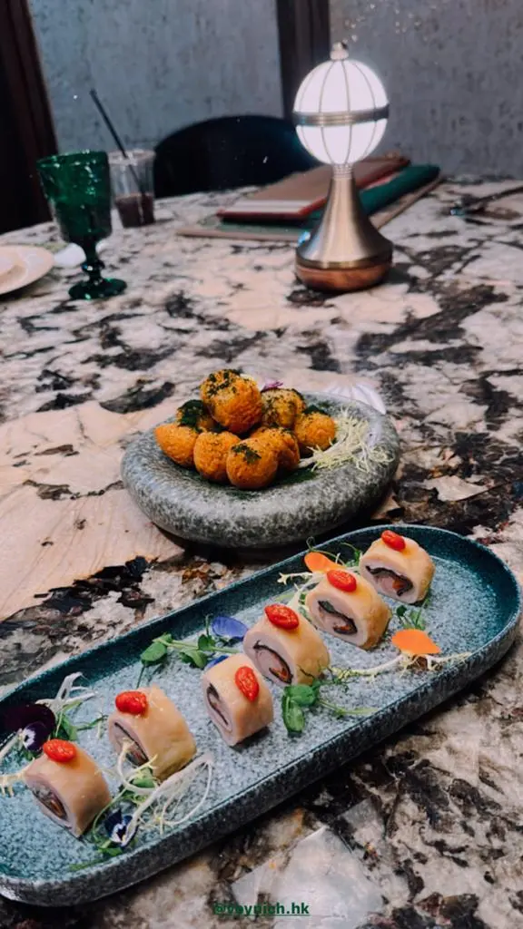 去海港城行下街,見到有新餐廳@@就試試佢~中菜fine dinning咁既格局 裝修都算幾特別 又有戶外區吹下海風>v<D野食幾精緻,如果係好鐘意相機食先既人,黎呢度應該會好開心,鐘意食d香口野, 點左佢地既脆炸韭菜鴨血比想像中驚喜 做開胃菜幾好~酒糟醉雞卷賣相好得意 壽司仔咁 , 酒既份量幾適中 滿意既最令我心心眼係佢地個甜品 茶香繡球豆腐~好靚呀~ 上個時我都猶豫左一下呢個係咩黎咁靚既 哈哈 茶香同豆腐估唔到又咁夾 ,Feel到佢地好注重賣相.又係滿意既 ~新開張黎講都幾驚喜, d staff都幾專業介紹每一道菜 可以再黎~…查看更多