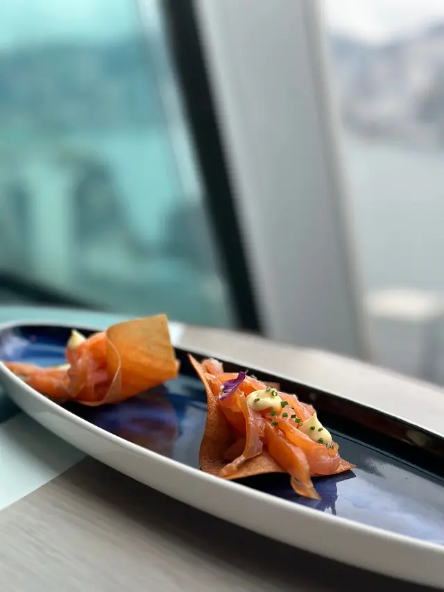 經過咗忙碌嘅兩個月,決定好好獎勵吓自己!今次就揀咗一間位於銅鑼灣世貿中心嘅法式海景餐廳食個lunch☺️ Bochord,其實係bookhoard,意思就係藏書室。餐廳裝修以氣派典雅為主,周圍嘅牆身都有嵌入式嘅書櫃,而書櫃入面都擺放咗好多裝飾用嘅書,唔講以為入咗王宮入面嘅私人藏書室咁,而且餐廳對出仲有維港景,好開揚,呢度食晚餐一定好浪漫,啱晒慶祝! Bochord嘅午市有3, 4或5-course menu可以選擇,怕食得太飽我哋最後選擇咗4-course,包前菜、餐湯、主菜同甜品 餐包係酸種麵包,上菜嗰陣時仲係暖嘅,口感外脆內軟,呢個sour dough咁多西餐嚟講都真係算幾好食!餐包仲跟咗海鹽牛油同埋sun-dried tomato pesto cream ,誠意十足,我哋自己就最鍾意tomato pesto cream Hokkaido Scallop Carpaccio比起出面嘅carpaccio, Bochord嘅帶子比較厚,有口感!配合嘅醬汁味道主要係由柚子同青檸所堆砌出嚟嘅酸味,仲加咗山藥去增加口感同層次,幾開胃~ French Morels & Iberico Pork Chorizo同我哋想像中係一塊塊嘅Chorizo嘅有啲出入,佢哋反而係將Chorizo炒熟,再釀入羊肚菌,係幾特別嘅presentation,而且兩者嘅味道鹹香鹹香咁,係幾新奇嘅體驗~ Hummus & artichoke Bisque 算係一個比較濃味嘅湯,口感好幼滑,有加到火腿同蕃茄乾令到成個湯嘅味道更加豐富,湯種帶點鹹香,食落唔算膩,但都幾飽肚😗 Lobster Bisque (+$58)酥皮脹卜卜,賣相幾好,龍蝦湯味道濃郁,仲加入咗蝦肉,如果想口感再綿滑同冇咁濃嘅話,可以再另外加埋跟湯嘅鮮忌廉,跟自己口味調調較。 Main Course 52-degree Sous Vide French White Cod Fish 魚皮同魚肉分開處理,魚皮食落非常香脆,而魚肉食落一疏疏,好似蟹肉咁,經過慢煮嘅鱈魚一啲都唔嚡,絕對有記憶點! Traditional Roasted USDA Prime Beef牛扒嘅部位係flat iron steak。雖然佢就話係150 gram,但就咁望落應該絕對唔止,牛扒三成熟啱啱好,食落嫩滑多汁,配搭嘅薯菜都有心思,薯條係用咗鴨油去炸,香味提升咗一個層次 Dessert兩款甜品嘅擺盤都好精緻,一款以士多啤梨為主調,另一款就係芒果,而且用咗唔同口感嘅食材去堆砌層次。值得一提係芒果甜品入面仲加咗薑汁嘅厚身cream,真係幾特別! 食物有一定質素,而且環境唔錯,又啱慶祝,都真係值得一試啊!…查看更多