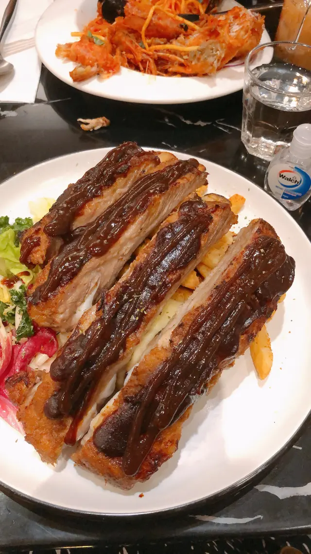 之前第一次認識呢間小店係舊店結業嘅消息🥹個陣仲未有機會食到好彩店主揀返原區重開當然要支持下🥳必叫招牌龍蝦湯$68味道香濃 但今日有少少偏咸小食必叫焗雞翼 $48(本身有6隻 但太餓食左先記得影🤣)Cajun粉好香 食落有啲似buffalo wings口味 但冇左個層厚厚嘅炸粉 而且入面幾juicy 呢個價錢黎講超抵!雖然呢間好似主打食牛扒但呢期戒牛所以叫左個Spain Duroc Rib $248點知黎到勁!大!份!(建議share食)仲要配埋薯條+薯蓉食落似豬扒 幾juicy 有驚喜👍🏻海鮮意粉 $128用嘅係蛋麵 唔係平時食開al dente口感嘅pasta 掛汁幾好 但個人偏好al dente 嘅多啲份量大份 但料普通…查看更多