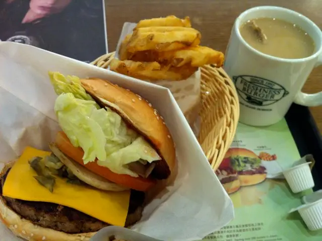 星期三晚去CWB做facial前要醫肚,突然想食漢堡包,猶疑緊去Burger King還是Freshness,最後還是後者得勝!好耐未來過這間Freshness了,可能weekday晚上食客不多,可以靜靜地享受晚餐。見set抵過單買,點了特級牛肉芝士漢堡餐連薯格和飲品。嘩,那包又大又熱烘烘的薯格極之美味,加上我摯愛的catch up簡直係人間極品!飲品我改了熱飲,原來係Twinings茶包,很高興,點了喜愛的Earl Grey tea。主菜特級牛肉芝士漢堡份量足夠,生菜和番茄一般,牛肉的肉汁豐富,真的有炭燒的牛肉味,同一般的快餐店的漢堡真的沒得比。自己其實很喜歡Triple O和Shake'em Buns的漢堡包,無奈價錢始終較貴。相對來說這兒的價錢較化算,牛肉的質量也不錯,所以值得再來!…查看更多
