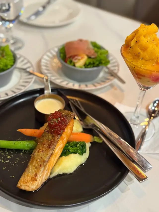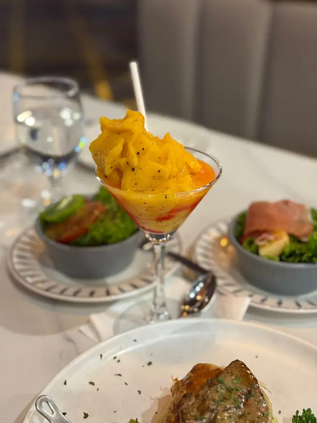 呢間餐廳以前喺屯門啟豐嗰陣已經食過,原來開咗分店喺Wet Land,餐廳主打食牛角包之外,仲有其他西餐食。晚市雙人套餐 $358🥗是日餐湯 及 田園沙律 各一餐湯係黑松露蘑菇忌廉湯,creamy好好飲!🍖BBQ醬燒豬仔骨 配炸薯角 +$28薯角鋪滿底,Ribs醃得好入味,鋪上BBQ醬,啖啖肉好滿足!🥐牛魔王餐廳主打牛角包就梗係要嗌嚟試吓,牛角包焗得好脆,入面夾有蘑菇炒蛋、芝士、牛肉漢堡等,呢個組合係無得輸勁夾!🍾白酒忌廉煮藍青口 +$28食到好香嘅白酒香味,有洋蔥同忌廉做醬,攞青口肉點埋個醬,好味🥑煙三文魚牛油果蟹肉他他 $98牛油果喺底,蕃茄同埋煙三文魚切粒鋪上面,仲有拆殼蟹肉喺頂,食到有少少青檸味,酸酸地做前菜幾開胃!🌸凍芝士奶蓋桂花茶 加 愛玉 +$24愛玉隱藏左係茶入面,芝士奶蓋厚厚一層,搞混左就見到愛玉出返黎,飲落啖啖愛玉同桂花香🍋凍鮮檸冬瓜茶 加 愛玉 +$18檸檬厚切,酸酸地配冬瓜茶唔會太甜,幾解渴,推介!…查看更多