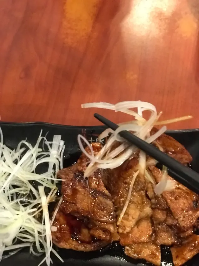 九點到MegaBox 吉仔打算打邊爐,可惜已售馨,惟有再揾食。揾食揾食,食到呢間晚餐嚟講~呢個價錢有呢個質素總算幾好!叫咗個小食-燒汁烤薄豬扒,夾埋啲生洋蔥絲一齊食,好㚒