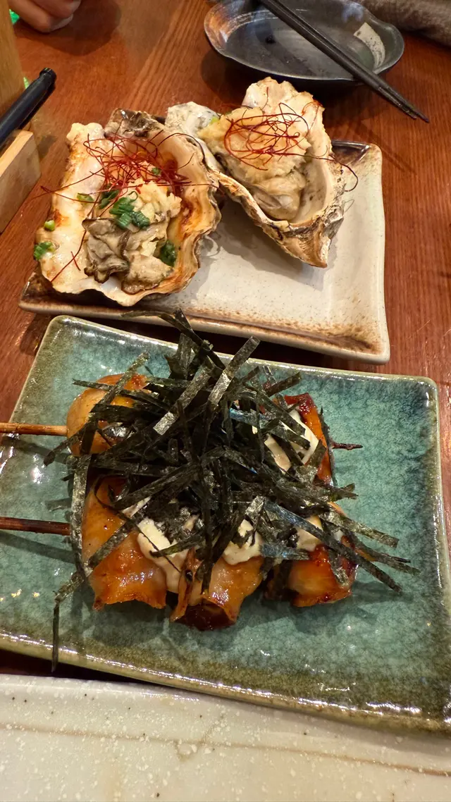 呢間嘢好似幾出名,喺旺角銅鑼灣都有分店。一場嚟到中環地區,就諗住過嚟試吓啦。自問都食過唔少差唔多價錢嘅串燒店,呢間嘢唯一嘅優點就係好平有$10/$15/$20串嘅選擇,但係就要兩串起跳。第一次食,咁梗係要叫啲不嬲去開串燒舖要叫嘅款式,例如係雞肝、雞皮、雞翼、牛舌芯、燒茄子等,見到食評有人推介燒鵪鶉蛋串,所以都叫黎食吓。其實$10-$15 無乜太岩叫。但生啤$48買一送一係幾抵飲。大致上嘅評價就係味道普通,有得揀唔會再回訪,有唔少差唔多價位味道更好嘅選擇。但overall叫對得住個價錢囉食評時間:黑松露雞肝,極普通,燒到全熟,冇黑松露味。雞翼味道普通,冇燒到外脆內嫩嘅感覺,就普通燒雞翼。燒菠蘿: 就正常燒菠蘿燒蠔: 係平,$48/2 隻,但完全無蠔味,食完唔知食咗咩燒鵪鶉蛋串:直頭係唔知點解會有呢個菜式,仲要有人推薦勁伏燒牛舌芯: 佢冇寫厚切,所以係超薄,而口感一般,可以唔洗叫