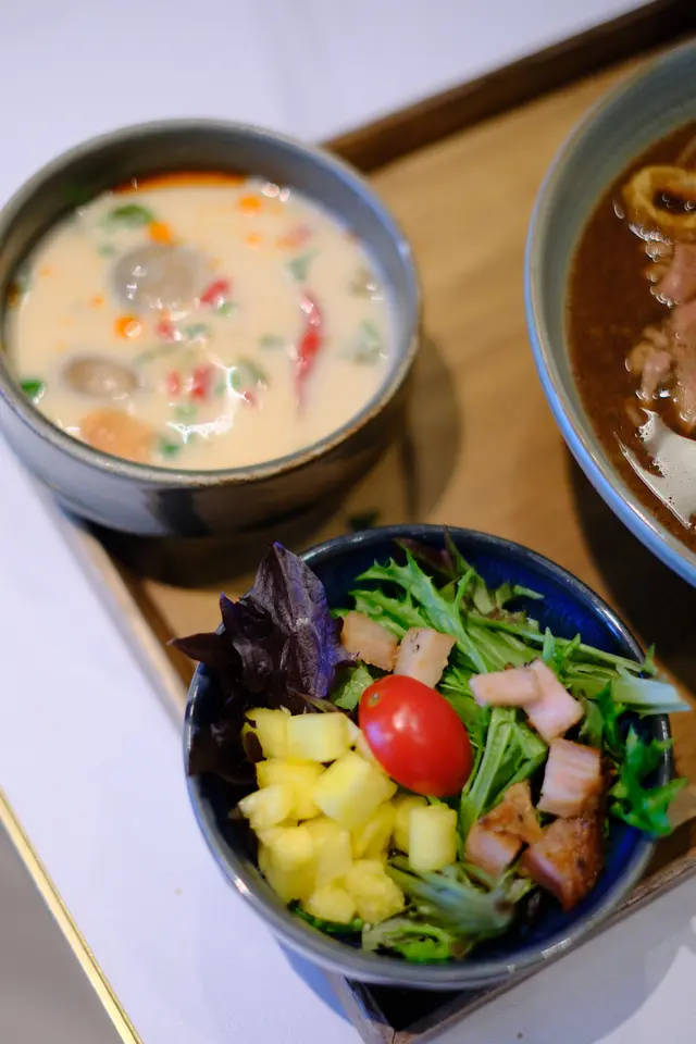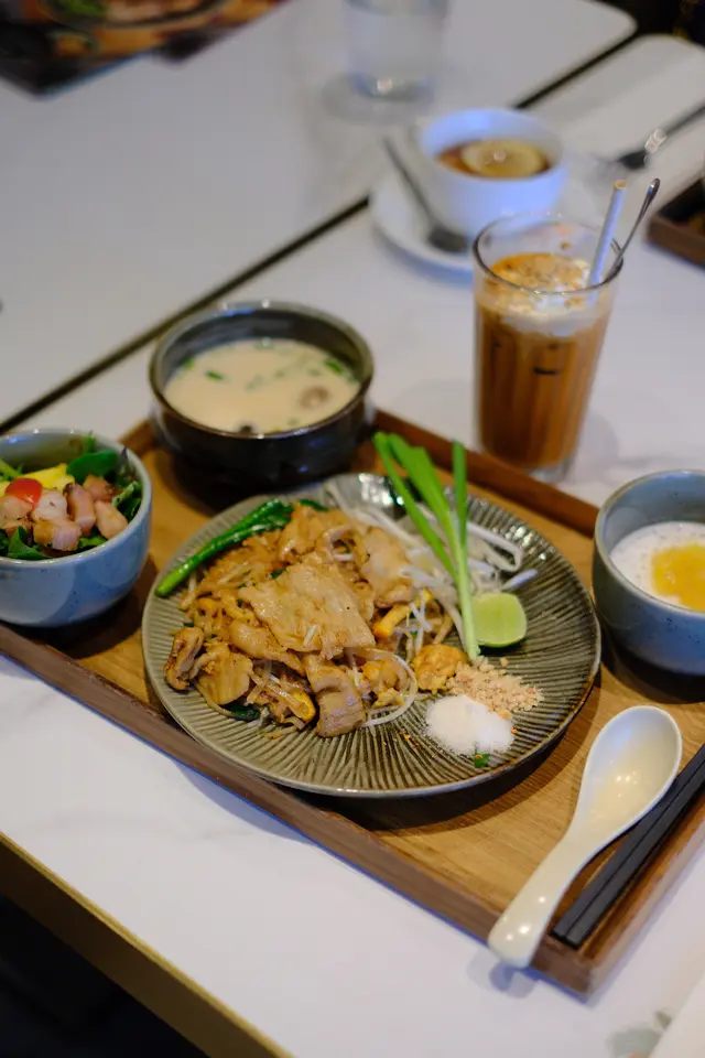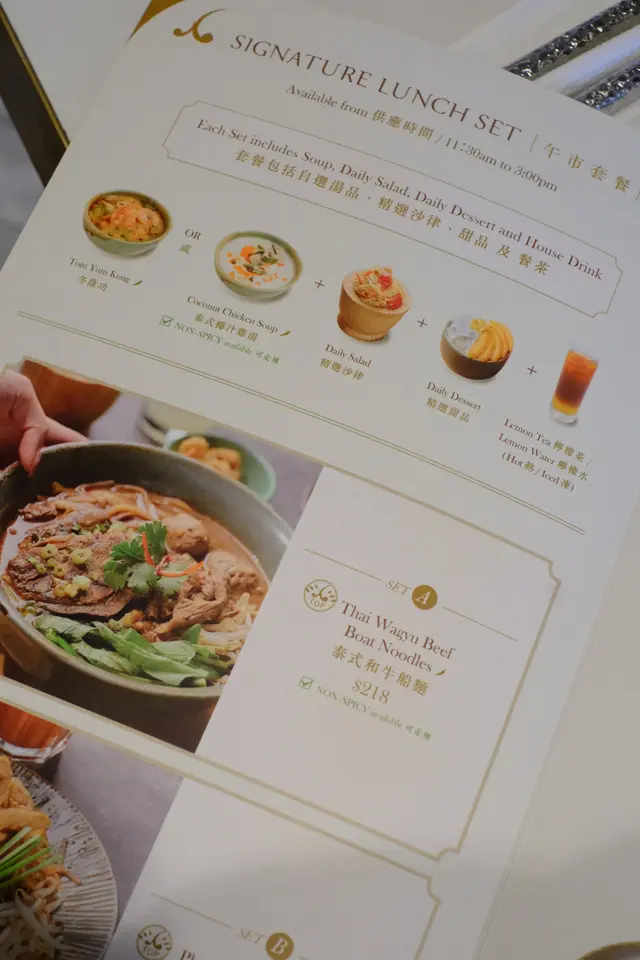 太掛住泰國啲嘢食所以今日去了金鐘太古廣場 PP 米芝蓮高級泰菜 Apinara食Lunch 。平日都真係幾Full,叫了兩個Lunch set 都幾多野食 !!套餐包括湯、沙律、主食、甜品和飲品,總共有八款主食可以選擇湯品: 冬陰功、泰式椰汁雞湯同朋友都揀咗雞湯,酸酸辣辣。非常開胃!湯加入了份量好多的雞肉和蘑菇等配料!沙律🥗不過不失泰式和牛船麵 $ 218湯底香濃醇厚,超多牛肉配料,牛丸、牛腱、生牛肉片……啖啖肉,岩曬牛魔王( ^ω^ )!不是味精湯,飲落去都唔會口渴!泰式豬肉炒金邊粉$188面質彈牙,豬肉調味非常惹味。豬肉肉質爽口,擺盤提供其他調味選擇,加入糖和辣椒粉味道更加昇華!甜品芒果糯米份量啱晒做甜品,椰奶味香,芒果新鮮夠甜。味道比較合香港人口味,唔會太油膩!價錢雖然唔算平,但係位於金鐘嚟講和食物的份量質素優質,都值得推介!…查看更多