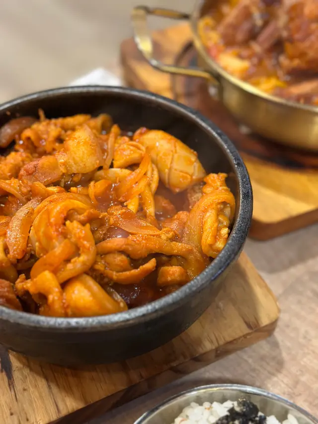 鍾意食韓國嘢的你不要錯過!今次去到將軍澳分店韓閣,冇諗過啲嘢食咁大份仲要幾抵!今次去了晚市。叫了精選客飯套餐!$88一款或者$168兩款餸菜,包飯熱飲和例湯。飯還要配上紫菜!今次叫了鑊仔辣醬炒魷魚配香烤豬腩和辣蕃茄豬仔骨粉絲鍋。分量十足,調味恰當。特別喜歡豬仔骨粉絲,豬仔骨非常腍。去韓國餐廳點可以唔食炸雞,叫了半半雞。烤甜辣芝士炸雞和香蒜蔥燒味。邪惡的芝士炸雞,芝士分量十足!外面脆口,內裏Juicy! 喜歡吃微辣非常推介這個口味!總共叫了三個主菜和一杯飲品,大概$450。以咁嘅份量來講,這個價錢絕對超值!…查看更多