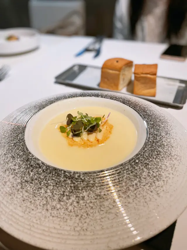 聽朋友講話荔枝角有好多好食既餐廳,佢仲介紹左哩間隱藏喺荔枝角工廈入面嘅西餐廳,咁我就即刻book定位去試一試。我地平日去食,都座無虛席,相信食物質素有一定保證。3-Course Set Dinner Menu⭐️餐包意式香草餐包上檯既時候係熱辣辣的,口感外脆內軟,蘸埋橄欖油同埋意大利黑醋一齊食,酸酸地夠哂開胃。Soup 餐湯⭐️巴拿馬芝士薄片配薯蓉湯哩個湯係將薯仔打至綿密既薯蓉,入面仲加左牛奶去打,口感好滑嫩細緻,飲落充滿濃濃既薯仔同埋牛奶既香味,面頭仲有一片燒脆左既巴拿馬芝士,兩樣夾埋一齊非常之夾。First Course 頭盤⭐️地中海香草番茄乾凍批呢道菜係一道好清新既開胃菜,食落口感似番茄啫喱,味道酸酸地,好特別。⭐️牛油粟米泡沫配加拿大海膽女孩見到一定心心眼既一道菜,因為佢係用一個玻璃首飾盒做擺盤的,睇落賣相十分精緻,一打開入面見到最愛既海膽,仲有爆谷、粟米、泡沫,海膽好鮮甜,加埋香甜既粟米、香脆既爆谷,同埋玉米味既泡沫一齊食,口感味道好有層次、好特別!Second Course⭐️意式雞肉捲配花雕汁雞捲肉質好嫩滑,一啲都唔柴口,將意式雞捲融合中式既花雕酒,原來可以咁夾。Entrees 主菜⭐️焗㭲陵蘭銀鱈魚 配黑松露忌廉汁真係第一次見咁厚身嘅銀鱈魚,銀鱈魚肉質好嫩滑,鮮嫩多汁,煎香兩邊仲更加香口,旁邊既醬汁係黑松露忌廉汁,味道有啲似黑松露忌廉蘑菇湯,兩者夾埋一齊食簡直係絕配。⭐️焗羊柳 薄荷青豆蓉 羽衣甘藍我自己一向都好怕啲羊羶味,但呢個羊柳一啲都唔羶,烹調時間亦都控制得剛剛好,可以保持到羊柳既肉質鮮嫩,羊味亦恰到好處,旁邊仲有啲炸過嘅羽衣甘藍,食落好似紫菜,好得意!晚餐跟兩杯餐飲,最後我同朋友都叫左有機薑茶,食左咁多野食之後飲番杯薑茶暖下個胃,真係好舒服~推介指數:⭐️⭐️⭐️ (3.5/5)📍FAB Kitchen (荔枝角)📍荔枝角長沙灣道883號億利工業中心7樓704號舖…查看更多