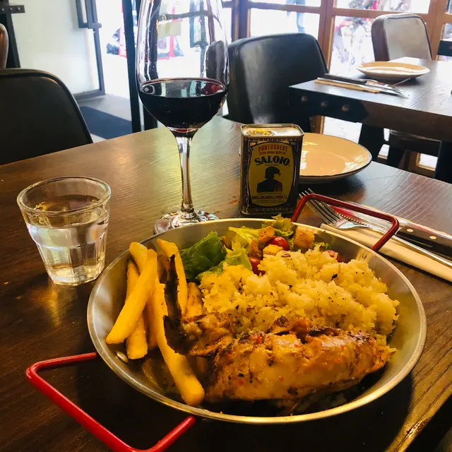 堅尼地城其實好多好野食。間間都好吸引,所以隨緣搵左呢間葡萄牙菜。$98set lunch + $25甜品+$50紅酒再+1。價錢黎講算正常,而味道唔錯,值得試下。先講下佢個飯,出色!佢用risotto煮法雞湯煲成 飯好香有雞甜味,可惜唔夠熱。沙律加上葡萄牙橄欖油同炸粟一燒碎?好香好開胃薯條鮮炸好炸,鹽都冇落但食到好濃薯仔味雞係敗筆,勁鞋,但我鐘意個調味。葡萄牙 紅酒好香,易入口,想買。葡萄牙人侍應好靚仔好熱情,差d比佢迷倒,好彩我係男人…查看更多