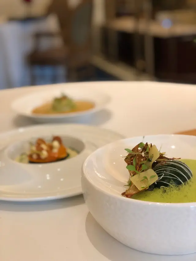 環境 7.5/10K11 musea入面,地鐵站一出就係,雖然只係2樓,但都可以望哂成個大海景食飯。所以幾適合同女黎食。餐具器皿正常水準,每款酒配番特定酒杯,碗碟都有溫熱過先上菜。服務7.5/10服務正常,主要都係一班斯文叔叔著西裝上菜,會簡單介紹菜式,倒水換餐具都及時,大致可以。介紹wine pairing的外藉侍應十分用心,抵讚。味道7/10不過不失,主菜慢烤鴿極出色,8-8.5/10,唔似大排檔食脆鴿肉嫩,佢除左以上2點,仲有極極濃鴿肉清香味,簡直好似萬鴿係你口中奔騰咁。其他菜無咩回憶點。價錢6-6.5/10普通set fine dining埋單千幾,尚算可以,但upgrade set 再加wine pairing就2千幾,性價比過低。整體7/10紀念活動可以黎1次…查看更多