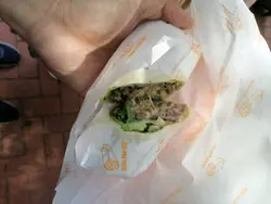 。店鋪是把墨西哥卷從中間切開方便客人食,但是當吃的時候也是十分不方便,因為醬汁會在四面八方流出嚟