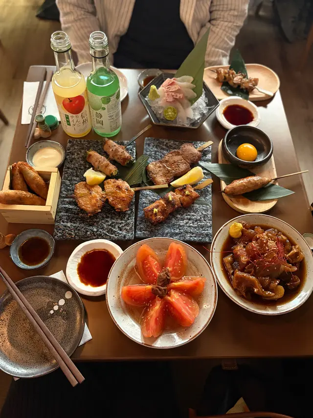 中環隱世日式串燒居酒屋🏮1. 梅子蕃茄 $58酸酸甜甜幾開胃 作為餐前小食一流2. 雞皮餃子 $60皮脆多汁 餡多皮薄3. 煮牛筋 $75有好多舊 都幾腍 冬天配酒食好暖胃4. 免治雞肉棒 $58雞肉打到均勻 仲有少少軟骨嘅咬口 點埋個蛋汁食 口感豐富5. 雞橫隔膜 $35幾特別嘅Texture 有啲似食雞軟骨 但係又冇咁爽口6. 雞翼 $45幾juicy 雞肉幾滑7. 豬頸肉 $48豬味幾出 油脂分布均勻8. 九條蔥豚肉卷 $48蔥香味十足 豚肉味幾突出9. 牛舌芯 $68牛舌肉質幾厚嫩 有咬口10. 蜜柑鯛 $138刺身好新鮮 食落肥美又鮮甜11. 果汁梳打汽水 $32嗌咗蘋果味 同埋蜜瓜味 甜甜地幾fresh 幾好飲📍星橋居酒屋 中環嘉咸街35-39號嘉豪大廈地舖…查看更多