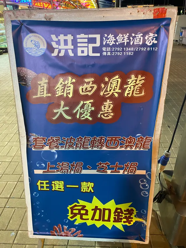 週三去西貢Staycation,晚上散步正好先看到洪記酒家,店員說2人套餐中的波士頓龍蝦可以免費升級到澳洲龍蝦,覺得不錯就嘗試了一下。488圓4個自選海鮮+一個蔬菜,我們多加了100圓升級了一條魚。海鮮的味道做得還不錯,以之前吃的海鮮差不多。食材還算OK,感覺比較新鮮。服務員態度也OK。上菜速度正常,並沒有等太久。本來看到open rice對這家差評很多,並沒有太大抱期望,但吃完覺得還挺不錯的。對於價格和食物都滿意。
