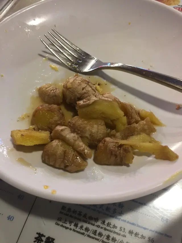 眼見敏華冰室愈開愈多,應該有其固中原因🧐常餐是最能反應一間冰室的水平,而沙茶沙底也是頭一次見到,好奇之下就點了一個常餐。先上炒蛋,雙腸和多士,普普通通,而沙茶牛通等了差不多15分鐘才上桌,嘩!!!!!成煲薑上枱,撈出半隻碟的薑,還有很多在碗底,先呷一口湯,好濃薑味,每一口都會不小心吃到薑,我這碗是煲底撈上來的嗎?…查看更多