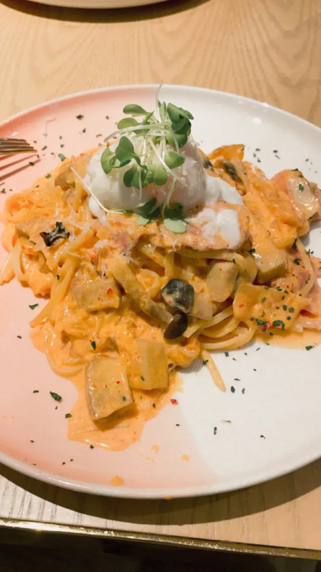 Happy Friday和同事出去食lunch,就試一試這間打卡餐廳韓式卡邦尼配溫泉蛋意大利麵🍝(4🌟/5)卡邦尼醬加入泡菜一齊煮,將原本白色都醬汁煮成橙色,更吸引眼球,更開胃,而煮過的泡菜,減去原有的酸味,非常易入口,整個意大利麵奶油味很濃,估唔到泡菜同卡邦尼咁夾👍🏻唯獨份量偏少,女孩子吃完都唔夠飽😅用恆生信用卡有8折💳…查看更多
